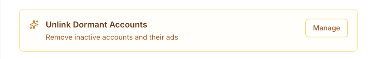• With one click, unlink all dormant accounts and remove their associated ads