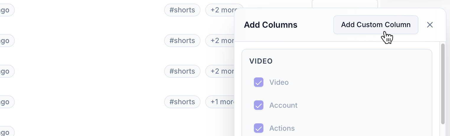 You can now create custom columns in your Accounts and Videos tables โ€” giving you more flexibility to track what matters to you.