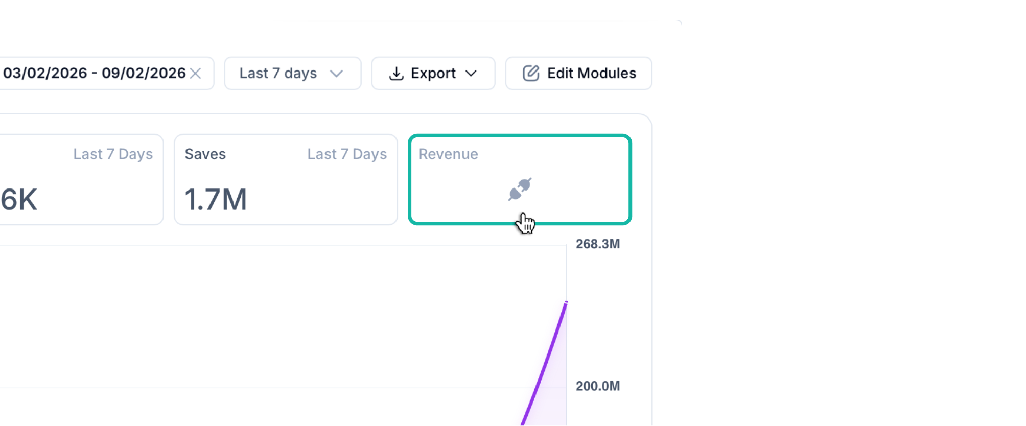 Click the “Revenue” card at the top of the graph in the overview